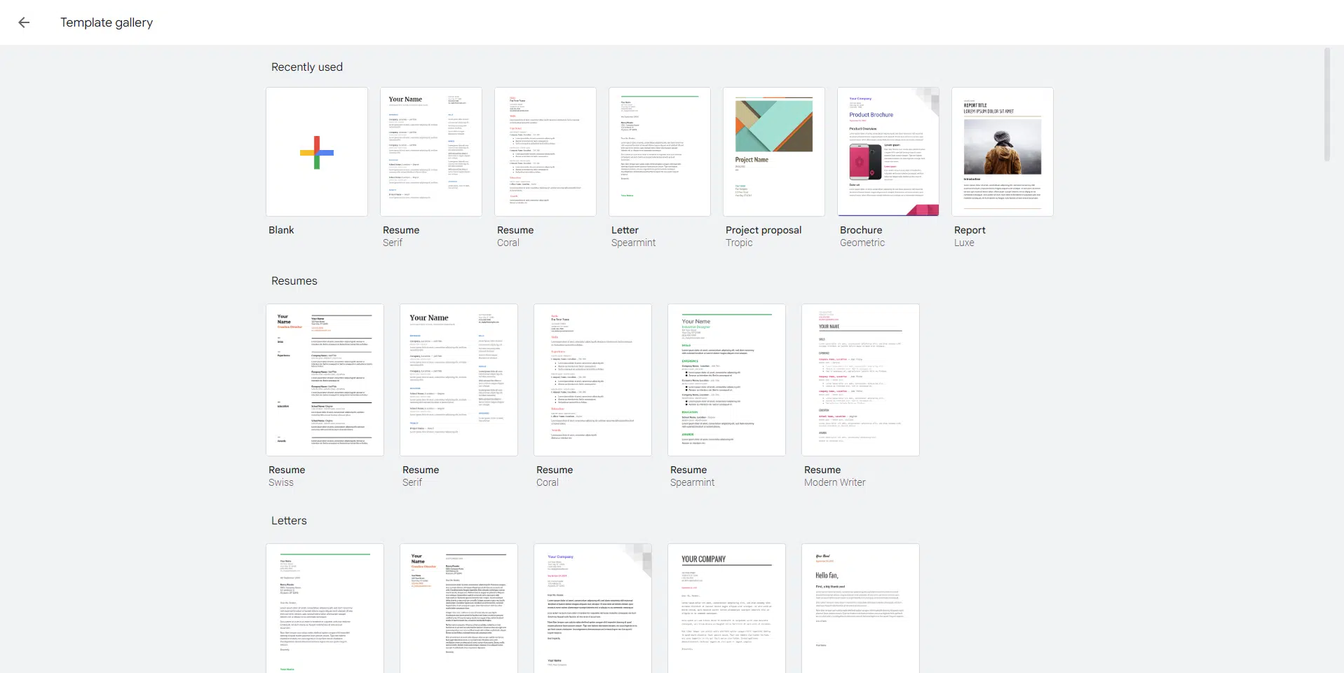 Google Docs has a variety of resume templates you can use. When you’re on the Google Docs dashboard, click “Template gallery” in the upper right-hand corner. Scroll down to the resume section and find an option that works for you. Then, all you have to do is plug in your information. To ensure it stays in the correct format, download the document as a PDF before sharing it with others.