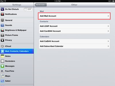 Tap Add Mail Account.