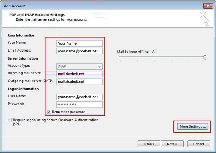 Incoming and Outgoing mail server: mail.www.ricebelt.net