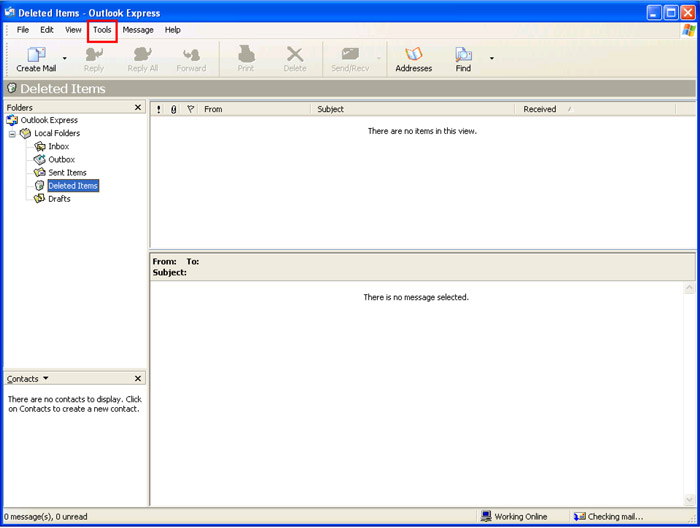 Outlook Express uses the strikethrough delete/purge functionality. The Trash box doesn’t function. You will have to drag emails to the Trash folder manually.